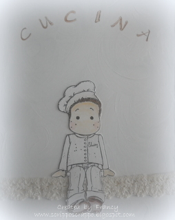 I created a card with Magnolia stamp, I love this Tilda that writing her diary. I paint the books and I coloured it with crayons.